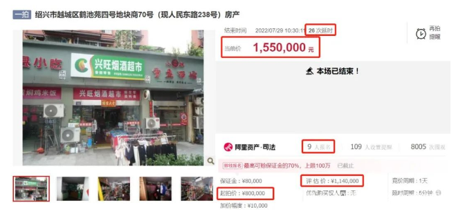 近日,越城区鹤池苑一间建面约56㎡的社区商铺线上热拍,引发了不小的关注。 不止引来9人疯狂争夺,更是从约1.42万/㎡的起拍价,生生拍到了约2.76万/㎡的成交价,溢价率超93%。