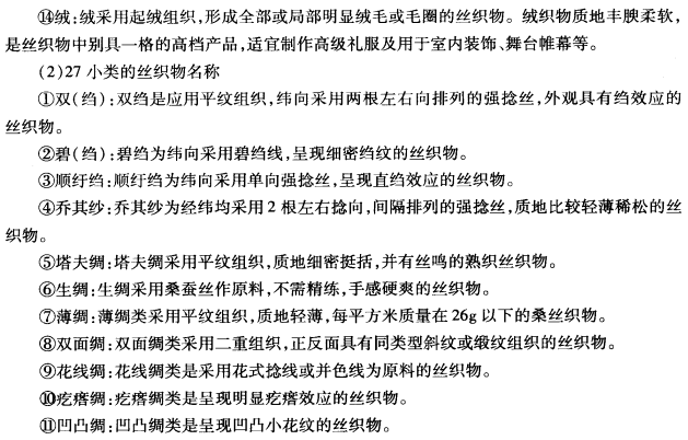 (1)14大类的丝织物名称: