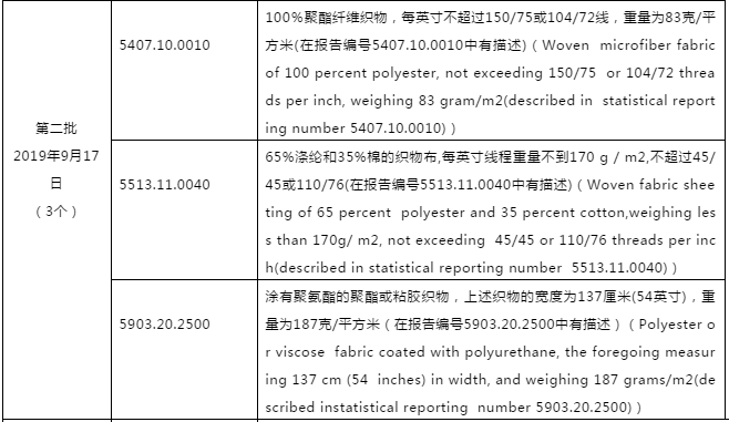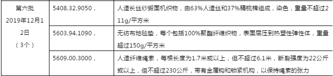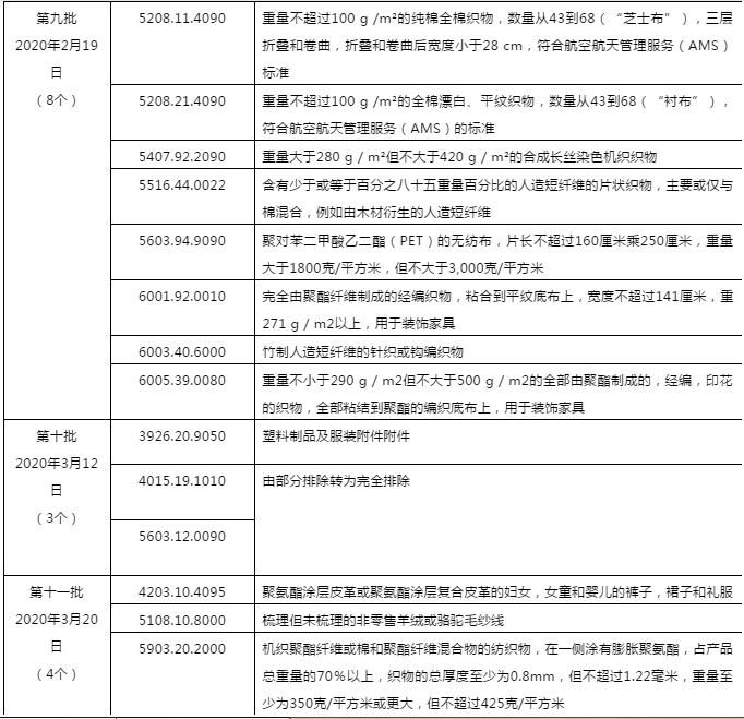 本次由部分排除转为完全排除的纺织品描述与HS码如下: