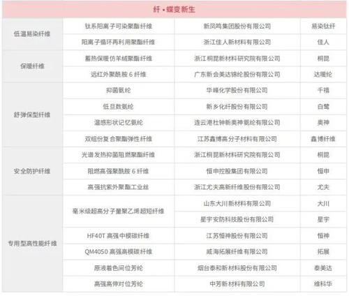 基于对流行元素的调查和消费端的共性需求,以及纤维产品是否具备流行的条件,比如产品是否实现了产业化,是否成熟,后道应用是否被认可等方面,中国纤维流行趋势发布团队推介了八大类29种纤维。