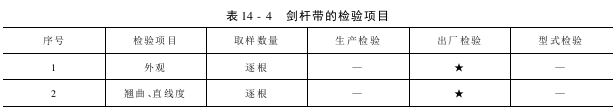 每批剑杆带产品出厂前,都应该按照表14-4规定的出厂检验项目与取样数量进行检验,如有一项检验结果不符合要求,则判定为不合格品,该产品报废处理。