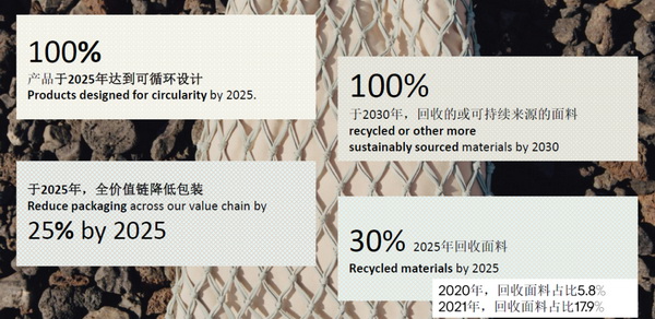 海恩斯莫里斯集团作为在全球纺织品循环领域有诸多探索实践的领先者,明确可循环和气候变化是集团可持续发展的两大重要主题。海恩斯莫里斯集团公共政策经理许佳慰在会议研讨阶段分享海恩莫里斯集团在纺织品循环的引领目标和实践。
