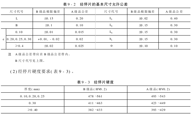(1)各类经停片的基本尺寸允许公差(表9-2)。