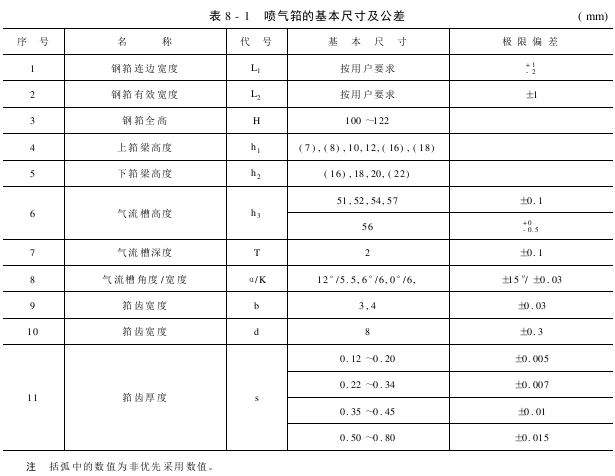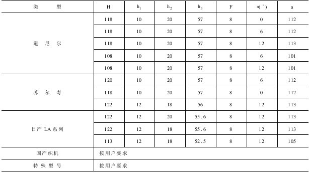 按喷气织机的型号、类型与喷气筘主要尺寸的对应情况见表8-2。