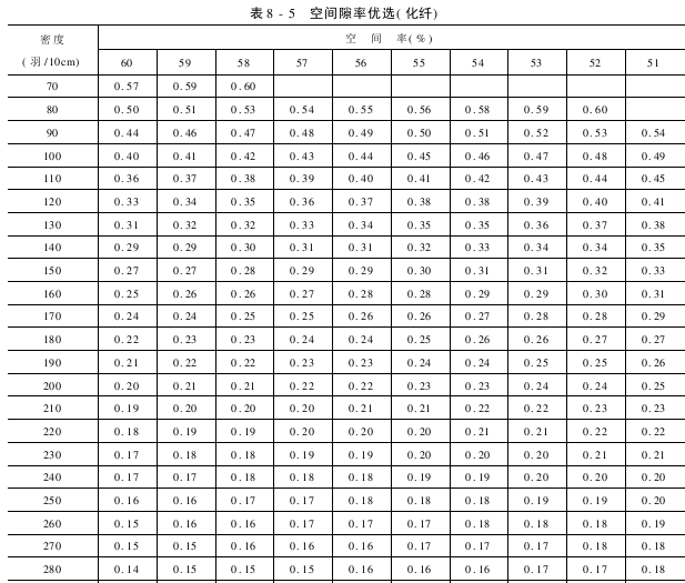 空间隙率优选55%~60%(化纤)见表8-5。