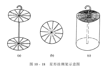 目前,蚕丝上色多为面料上色或绞丝上色,以面料上色为主。丝布料的品种繁多,各品种又有自己的组织特点。有的厚重,有的轻薄;有的是提花面料,有的是平素布料,也有的是绉布料。 真丝面料选用何种设备上色可得佳效果,要视布料的组织规格、批量、色泽深浅以及上色工艺等条件而定。总的来说,真丝布料比较轻薄,质地柔嫩,所以宜采纳松式、少摩擦的设备为佳。 目前,真丝布料上色的设备,主要有星形架上色机与方形架上色机及SDF丝绸溢流上色机。 一、星形架上色机与方形架上色机 11星形架上色机 星形架上色机,是目前国内外仍采纳较多的丝面料上色设备之一,如图10-17所示。它主要是由一只大上色槽与一个挂绸星形架组成。染槽呈圆柱形或方形,用不锈钢材料制成,可直接与间接加热,还备有循环泵,可使染液循环。布料被一层层挂在星形的挂绸架上,所谓星形架是一只两头有圆盘的金属架。如图10-18(a)所示。圆盘的连接档上装有许多挂钩,面料就挂在钩上。如图10-18(b)与图10-18(c)所示。因为挂绸钩之间相隔肯定的距离,所以布料层和层之间也相隔肯定距离而互不相碰,由于圆盘的横档通过圆心向外伸展呈放射形似星状,故称星形架。
