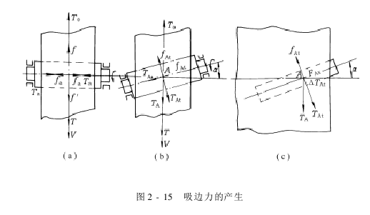 (1)使小压辊处于如图2-15(a)所示位置,α=0,分析此半幅布料受力平衡关系: 可见,忽略上式中的第二项,则当α=45°时,Fx 为大。事实上,由于第二项的存在,并考虑上述讨论中的理想化所产生的误差,α<45°时,Fx 已达到大。 由上面的分析,可以得出以下结论: ①吸边力Fx 随夹角α的增大而增大,但有一极限值,不能任意加大。考虑到吸边力过大时会引起布料较大的纬斜,普通取10°≤α≤20°。 ②要平衡Ta ,必须提供足够大的轴向静摩擦力fa ,因此P必须足够大。否则,不仅影响吸边,甚至会起皱或逃边。但是,P也不能过大。因为,P过大不仅会在面料上产生压痕,还可能影响面料纤维的坚牢度。因此,在安装吸边器时,要根据布料的品种与α角度,仔细调节小辊间的压力P。 ③辊面和布料不能打滑。因为打滑时,摩擦力的性质由静摩擦变为滑动摩擦,使fa 锐减,破坏了fa 和Ta 的平衡,吸边器无法正常工作,甚至不能工作。 ④减小轴承摩擦,有利于吸边。为此,要加强吸边器小辊转动部位的维护保养,保持良好的润滑状态。 四、吸边器的安装、使用及保养 (1)电动吸边器不锈钢辊的密封差,对温度高、湿度大、腐蚀严峻的环境适应性差。因此,定时保养很重要。普通好1~2周做一次清洁与检查工作。 (2)电气触头在使用肯定时间后,表面会变毛糙,使吸边器灵敏度下降,可用细砂皮打磨,使其表面光滑,以正常工作。 (3)吸边器的变压器是按单边头动作设计的。因此,应该使两侧机头有肯定的隔档,使面料边缘和触杆相距10~20mm,幸免两边机头同时工作而造成变压器损坏。而且,也可幸免吸铁动作频繁而大大缩短吸边器的使用寿命。但距离过大,面料简单偏移而造成脱夹。 (4)检查轧辊表面是否光洁平坦,预防布料擦伤、刮破。 (5)轴承要定期加油,并清理压辊端的纱头、尘埃、油污,预防压辊转动不灵便及在布料上产生油污斑。 (6)吸边器压辊的安装角度和布料的速度、厚薄、幅度及干湿度有关,普通小辊的轴线和布料纬向取10°~20°为宜。 (7)布料必须从切线方向通过两压辊的压点,且进出时为向来线。 (8)吸边器调幅横梁的中央离地面的高度为1.5m左右,进布辊离地高度为2~3m,出布辊离地高度约为0.5m。 (9)定期检查贮气桶、管道等是否漏气,压力表、气膜、气阀是否损伤。
