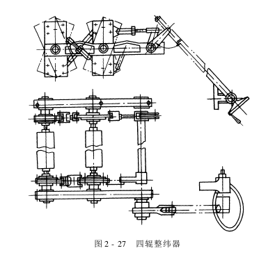 由于整纬辊数量的增添,并在调整时使整纬辊两端同时做相反方向休闲,大大增添了面料两边经纱张力的差距。所以,四辊整纬的整纬效果比单辊的好。通常,这种整纬器能调整±(100~150)mm的直线形纬斜。