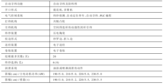 开口系统 开口配置Staubli2650型或常熟纺机公司的GT405—Ⅱ型电子多臂机,左侧下置式,SGA726Ⅲ型剑杆织机多臂开口属小开口机构,梭口高度普通为28mm,由程序读入系统操纵开口休闲,输入及修正极为方便。