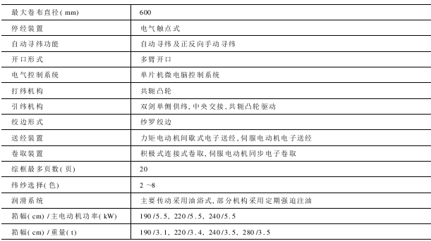 ASGA751型(机械多臂)、ASGA751D型(电子多臂)挠性剑杆织机是江苏大宏集团盐城市宏华纺织机械有限公司结合我国的具体实际、自主开辟的新型无梭织机。该机适应各种天然与合成纤维轻薄、中厚、厚重面料的织造。该机在设计上着重于织机的可靠性、稳定性,整机重心低,运行平稳,操作方便,易于维护与保养。可织单幅、双幅或多幅布料。特别适合于宽幅面料。 适织品种纺纱线 可织造各种天然纤维(如棉、毛、丝、麻)及各种再生纤维与合成纤维。 面料 可织造20~800g/m2范围内的轻薄、厚重面料,适合于粗纺呢绒、亚麻、真丝、棉织化学纤维等各种布料。 传动机构 由5.5kW的主电动机通过电磁离合、制动装置驱动筘座与剑带。电磁离合、制动装置和电控系统配合,可精确操纵织机的定位停车、启动等功能。 赠经装置 采纳自立的伺服电动机操纵赠经机构,可用操纵面板输入及调整经纱总张力,使经纱由满轴至空轴保持恒定张力。 电子选色装置 自立的机构,2~6色可任意选择。 引纬机构 引纬机构是双剑单侧供纬,由共轭凸轮驱动的剑带与夹持式钳纬器在中心交接纬纱尽成引纬。 优化设计周密加工的共轭凸轮操纵整个引纬过程,可使剑杆头休闲规律更趋合理,确保织机高速运转时纬纱张力稳定、交接可靠、运行平稳。 打纬机构 打纬机构由共轭凸轮驱动短筘座脚分别式筘座,利用惯性打纬,以减小休闲的冲击与能量消耗。 和引纬共轭凸轮具有同样高精度的打纬共轭凸轮,驱动牢固的短筘座,确保在织造高密布料及厚重面料时的打纬力。 自动选纬装置 配备自动找纬装置与慢动向前、向后装置。若浮现纬纱断头,自动找纬装置会自动将织机归转至断纬时的织口。在此过程中,微处理机会操纵全部机械方面的同步运行,可有效预防因织机停车形成的开车痕,从而保证布料的质量。 卷取装置 采纳变频电动机同步卷取。纬密设定只需通过多功能操作面板输入即可尽成,在织机运行时可落布。 纬密调节器和赠经卷取机构联动,转动手轮即可方便的调节纬密,纬密范围25~160根/10厘米。 绞边装置 采纳凸轮传动自立式纱罗绞边机构。 开口装置 采纳积极式下置电子多臂机开口。在任何负载或速度下综框始终保持无间隙休闲。多可配20片综框。根据设计的布料组织,由预先编制的纹板、纹纸或程序操纵综框的升降休闲。 自停装置 采纳电子断经自停装置及电子纬纱传感器,能精确可靠地检测出织造时发生的断经或断纬。 吸尘机构 采纳旋转涡气泵,延续不断的气流清除附在剑带上的尘垢,幸免影响面料品质及开机效率。同时还具有吹风散热功能。 润滑装置 采纳积极喷淋式机油循环系统润滑。主要传动轮系采纳油浴润滑,摆轴轴承采纳定期强迫润滑,无油浴部位采纳密封轴承。 操纵和检测 采纳微电脑操纵系统、具有自动找纬、故障检测、自动选纬、断经自动停车、断纬自动停车、液晶显示等功能。 该织机全部操作均通过安装在上横梁上的按钮操作,开车、停车、正反慢车、正反找纬、停车指示灯、紧急停车各处都有自己的按钮操纵。 在电控箱上装有指示灯,红灯表示纬断停车,绿灯表示经断停车,电控箱设有主电动机操纵开关,手动及自动转换开关,紧急情况下切断电源的红色紧急按钮等。