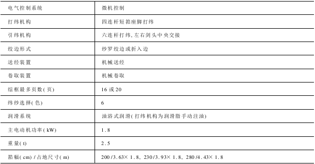 型式 挠性剑杆引纬,中心交接。