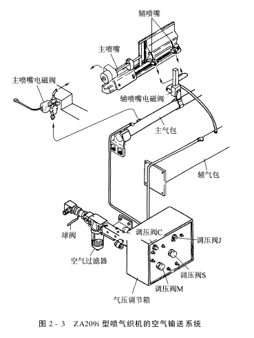 图2-3为ZA209i型喷气织机的空气输赠系统。