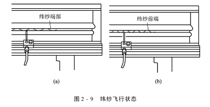 理想的纬纱飞行姿态如图2-9(a),大的“波形”纬纱在筘槽中央偏上方飞行的状态是理想的。