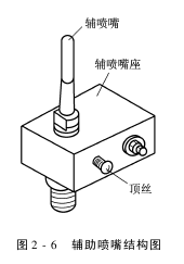 又称接力喷嘴,简称辅喷嘴它向着纬纱行进方向的斜上方喷射气流。辅助喷嘴结构图见图2-6。