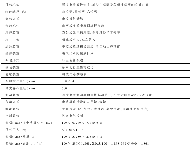 主喷嘴、辅助主喷嘴将纬线输赠到异形筘槽并正确定位后,辅喷嘴以接力形式逐组定时喷射,将纬线输赠过梭口,此时,拉伸喷嘴就用空气积极地把持住纬纱,使其伸直(以预防纬纱的松弛),提高引纬质量。本机构还设有两个光电探纬器,用以探知通常的断纬与纬纱被吹断现象,对引纬做到万无一失。当用不同纬纱织造不同的布料时,应配以不同型号的主、辅喷嘴与不同的气流参数(指气流压力、主、辅喷嘴的喷射定时等)。