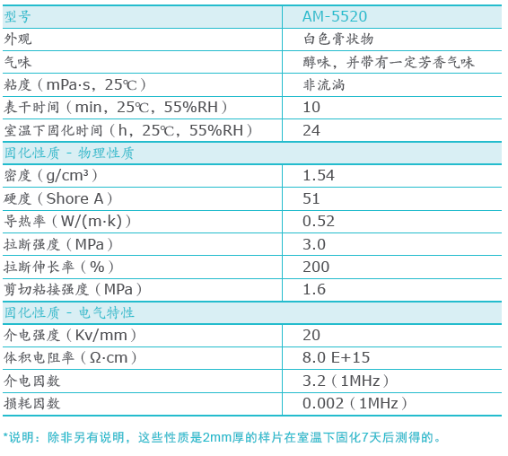AM-5520单组份有机硅室温硫化密封胶被广泛应用于各种电路板与模组的密封保护与封装,安装CRT和FPD模块,外壳,垫圈以及电子零部件的连接,亦可用于太阳能光伏发电集线盒和汽车电子中的ECU传感器外壳密封保护。