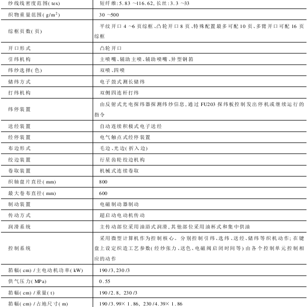 显示 键盘显示(参数设定,织机状态监控,自我诊断故障);多色指示灯指示经停、纬停、等待等信息。