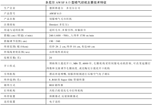 多尼尔AWV型系列喷气织机是德国林道尔?多尼尔公司近年来研究开辟的一种新型喷气织机。 适织品种 AWV系列型喷气织机适用多种天然纤维、化纤织,可造夹里布、领带布、牛仔布、劳动布、毛圈毛巾布料、工业用布、灯芯绒、超细旦短纤与长丝、防羽绒布、精毛面料、锦缎以及防晒布、气囊布、PU涂层布、装饰布等。 主要结构 采纳优质铸铁墙板。由圆截面的横梁以及两根钢质导轨相连接。织机有良好的动平衡,振动降到低点,不用地脚螺钉,可保持延续稳定长时间高速运行。 准确的引纬 对纬纱实现了准确操纵,借助于全程引纬操纵(PLC)系统,从储纬器开始到主喷嘴、辅助喷嘴的喷气时间与压力的操纵,纬纱监控,使纬纱在整个飞行过程得到准确操纵。 储纬器 采纳分别纱圈式储纬器。储纬器可以“S”或“Z”方向卷取纬纱。配有电子操纵的纬纱张力器以及自立的纺纱线张力检测器来检测纬纱。这些装置均在主机主键盘上尽成。 自动筒子转换 混纱织造时某个筒用尽或者浮现断头,由机上计算机系统将断头或用尽的储纬器停下,用其他储纬器供纱,保持织机延续运转。 主喷嘴 主喷嘴能处理八种颜色或纱型的纬纱。主喷嘴既可以单侧调幅,也可以对称调幅。喷嘴组件与剪刀、压纱板等形成组件,简化了翻新品种时间。 接力喷嘴 配备各种不同孔径与形式的喷嘴。每组接力喷嘴的电磁阀开关时间可以自立设定,由织机计算机操纵。 绷紧喷嘴与三纬断纬检测器集成在一起。三纬断纬检测器还装有两道纬停探纱器。 打纬系统 采纳共扼凸轮打纬机构,筘座采纳轻质合金创造,强度高。左右两侧均有一组打纬机构,打纬力平均一致,满足了织机高速运转要求。 归转式边撑 这种边撑可以上下左右自由调节,刺环的角度也可以方便地调节。 全幅式边撑 当布料有效宽度变幻时,全幅边撑无需切割,也无需更换任何部件,也可快捷地直接转换为一般边撑。 边剪 配有多种电控与自立驱动的边剪装置,包含电子边剪。 开口机构 可以配置史陶比尔公司的积极式凸轮开口机构、积极式或消极式多臂开口机构与大提花开口机构。超大功率的大提花驱动装置,适用于10000针以上的大提花装置。 开口机构中有通用型自动润滑提综杆系统,综框快速连接,多臂机构和凸轮机构快速互换。 布边机构 可配用电子绞边器,也可配用气动折入边。 赠经机构 伺服电动机操纵的赠经系统,可以配用直径800~1000mm的经轴,也可以配用直径1600mm的经轴,可以配左右经轴与上下经轴,所有采纳伺服电动机操纵。 卷取机构 采纳伺服电动机操纵系统,通过和张力检测与赠经系统的相互配合,准确操纵经纱张力。电子卷取系统可以和自动找纬系统配合,自动对准织口。可以配用机外大卷布装置,布卷直径可达1500mm。 利用伺服电动机与张力检测系统,同时利用操纵赠经、卷取速度,平综以及超启动电动机,达到去除开车与停车档的目的。 操纵系统 大屏幕的彩色显示器,含有多菜单功能,方便操作。大屏幕可显示各种参数,也可参数储存。 CAN-bus操纵系统是一个开放式多处理器的计算机系统。机上各个部件的数据由自立的C聚氨酯材料先处理计算,再将计算结果和主机进行快速交换。 DoNeT通讯系统用来监测、处理有关数据与工艺参数,提供服务。 型号示意: