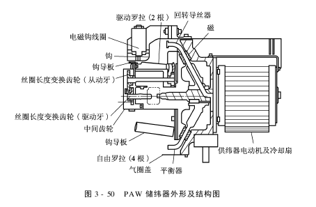 电子储纬装置通常由储纬头、操纵箱、预置器及手动开关组成。详见图3-49。