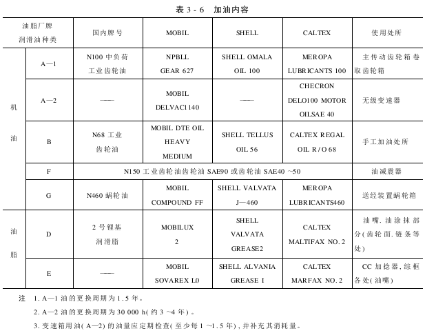 主要集中于左右主传动齿轮箱,送经蜗轮箱,卷取齿轮箱等部位,具体加油位置如图3-61所示。加油内容见表3-6。