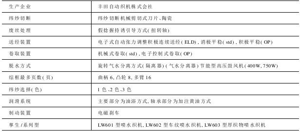 LW600型系列喷水织机是由丰田自动织机株式会社开发的新机型。其电子操纵技术是从JAT610型喷气织机移植的。LW601型为通用机型,LW602型为平纹专用机,LW603型为厚织物织机。 适织品种 可织造中厚型和制作气囊等高每平方米重量织物,可对应不同种类不同粗细纬纱的投纬,可织造出高附加价值的产品。 主要结构 箱式机架,4根支撑脚,对装载电子装置的机架构造进行了重新设计,提高了耐久性。确保织机在低振状态下高速运转的同时生产出优良织物。其它,采纳了新式的喷漆工艺保证机台的使用寿命将更为长久。 新型改良喷嘴(高速塔夫绸专用) 采纳了改良型长筒整流导管,大大提高了喷出水流的集束性。 由于喷嘴的位置向织口处近移了6mm,所以投纬的可能角度比原先增大了30°。不仅使投纬的调节变得更加简单,而且由于减少了水泵压力及出水量,从而实现了柔性投纬。在减少纬纱张力预防纺纱线断头的同时提高了经济效益。 由于喷嘴的形状的改进和精度的提高,使喷射水流的扩散(爆发)而引起的经柳现象及经纱受损大幅地减少,在机台高速运转时也能织制出高技术的织物。 气体吸纱装置 双喷机纬纱剪断后,由气体吸引纬纱。非常是在织造强捻纱的时候,能够稳定纱端的状态,实现高速织造。 纬纱刹车系统 在双喷机测长针止纱时,可缓和投纬张力,对幸免整理纱的紧纬及弹力纱的织造非常有效。纬纱刹车时间可通过多功能操作盘简单地输入。 完电式控纬器 在全部机型上都标准装备了能适应从原丝到强捻丝,从低旦丝到高旦丝广范围丝种的完电式探纬器,实现了机台高速稳定的运转。 无鼓风机式储纬测长(BLD测长) 由于舍弃了储纬用的测长鼓风机,大幅地节约了电力消耗。 带有和NRD测长相同的刹车机械,抑制了纬纱投纬时的张力,实现了超高速条件下的高品质织物的织造。 由于采纳了数字操纵,因而可根据纬纱的种类,通过多功能操作盘简单地输入测长针的佳动作时间,此外,在机台运行过程中亦可进行设定变更。 回转鼓式测长(NRD测长) 在对应高速运转的NRD测长方式的基础上,改进了纱道,标准装备了涡轮风机,提高了高速织造的稳定性。 由空气流握持,将纬纱卷绕在旋转的鼓上进行储纬,对各种纬纱发挥了其广泛的适应性。纬纱自动减速装置能预防纬纱的突然张力变动。双色自由交换装置(送纬机构带罗拉式储纬器) 使用原先适合多样性纬纱的LW独特的罗拉式储纬器。 由于数次投纬的纬纱被卷绕在罗拉滚筒上,张力保持了恒定。此外,作倾斜式旋转的罗拉式放纱机构预防了纬纱的相互重叠,即使对精细的细纱也能作特别柔和、稳定的测长。 可以变更罗拉所卷绕纺纱线之间间隔的间距可变机构和可以自由改变卷取张力的张力可变机构等。 测长电动机由变频器操纵,可以缓慢起动和停止,因而使得纬纱的卷绕非常柔和。在高速运转时也能进行稳定的测长。 以前有接近开关来读取角度,现改为编码器方式。由于采纳高速型电磁钩,进一步提高了高速追随性。此外,还可进行点动停止时的角度表示。 花纹、图案的选择 程序内藏式储纬器使花色组合及花色变更更加简单。FDU:999投纬×9999图案重复×3250步骤,EDU:大可输入9999种投纬。莎丽、手帕等长型花纹也能简单设定。 由于装有和多臂同步的装置,在重新起动时无需重新对图案。 电子操纵送经装置 同JAT610喷气织机一样也标准配备了装有AC伺服电动机的电子操纵送经装置。 由于使用了电子操纵送经,经纱能常常保持肯定的适当的张力,因而经轴从满卷到了机都能织造出高品质的织物。 预防停车档系统 配备了能有效预防织机停车后重新起动时停车档产生的机能。 时间机能(逆转机能),在机台起动前对预先设定的数次投纬进行正转或逆转,以此校正织口位置,同时对应停车时间也能进行校正。 可根据停台时间预先设定好数次投纬长度,以此来松弛经纱的张力,预防因长时间停台而引起的纺纱线伸长。在机台重新起动时,张力自动地回复。 织机点动同步,由于采纳AC伺服电动机,针对织机的点动(正转/逆转)送经量进行同步追随。 消极平稳 由于采纳了能适应从轻型到重型织物并根据织造的织物可进行变化的送经装置,提高了织物的品位。 积极平稳 积极平稳送经可保证送经和开口同步进行。适合于高密度织物及加厚织物等对打纬要求高的织物。 高张力规格送经 由于采纳了高刚性的构造和打纬多点支撑等方法,因而可适应高张力,并且可稳定地织造中厚型、高每平方米重量的织物(选择设定为消极平稳)。 水平织口 提高了胸梁的刚性并标准配备了大直径上卷布辊。由于提高了织口的稳定性,预防了撞击打纬现象,使得机台在高速运转下能实现稳定织造。 倾斜织口 为了对应不平衡多臂织物,采纳了倾斜织口。为了对应高密度、高张力织物的S型卷取,采纳了张力辊。这对预防撞击打纬现象的产生起到了强化作用。作为抗高张力机型,机台胸梁也得到了进一步的加强。 电子操纵卷取装置 由预先设定的卷取密度计算出电动机的旋转数,通过速度操纵,使电动机在肯定的速度下旋转。此外,对于织机点动等动作,由位置操纵来进行随动。由电子操纵卷取装置(ETU)进行的密度设定完全可以通过多功能操作盘输入。因而无需使用变换齿轮。 由于卷取密度在每英寸0.1根范围内可进行调整,正确的密度制织成为可能。 配合由预先设