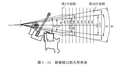 (1)在手柄1处于位置Ⅰ时,手柄1上的开关凸轮2推动限位开关3,限位开关3又使齿轮装置6的电磁离合器啮合,这样齿轮装置6就和侧轴8相互连接在一起。 (2)在位置Ⅱ、Ⅲ时,寻断纬离合器7脱开,这时侧轴8和主机脱开,可以自由转动。 (3)在位置Ⅲ时,限位开关3转到第二级位置时,电动机5启动。电动机5通过齿轮装置6往后转。带动凸轮反转,使综框反向休闲,而织机不动。 (4)精确转动一纬后,寻断纬离合器7就自动啮合,并通过开关凸轮2和限位开关3,将寻断纬装置的电驱动机构断开。手柄1回到初始位置Ⅰ。 手柄1的位置: 位置Ⅰ:寻断纬离合器7啮合。 位置Ⅱ:寻断纬离合器7脱开。当织机转一纬后,它又重新啮合。 位置Ⅲ:寻断纬离合器7脱开,手柄1已越过死点,寻断纬离合器7不能啮合。 四、P7300型片梭织机的梭口形状 P7300型片梭织机前部梭口的几何形状,可调节成对称梭口,梭口的开口角度调节范围在12°~33°(10片踏盘的开口角度18°~33°),钢筘的打纬角向经纱边倾斜4°,如图4-14所示。