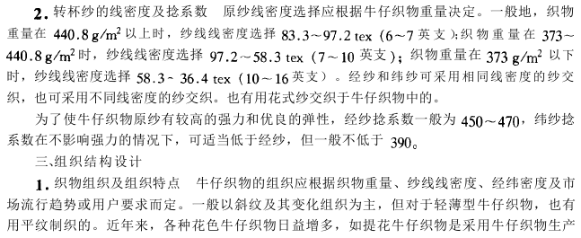 牛仔织物主要结构参数设计