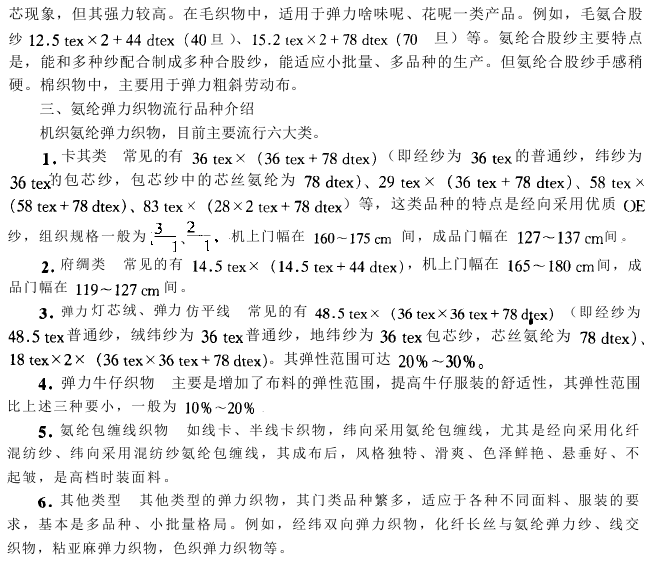 弹力布料是指用肯定的办法在布料中引进弹性,它能改善布料由于其结构特征而造成的伸缩能力差的特点,减少面料作为工作装布料时对人体休闲的束缚作用,随伸随缩、轻盈舒适,且能保持工作装的外形美。人们所说的弹力面料,通常是指含有较少弹性纤维的布料。由于弹性纤维价格昂贵,且过多使用弹性纤维,使布料弹力过大也无必要。 一、弹力布料的分类