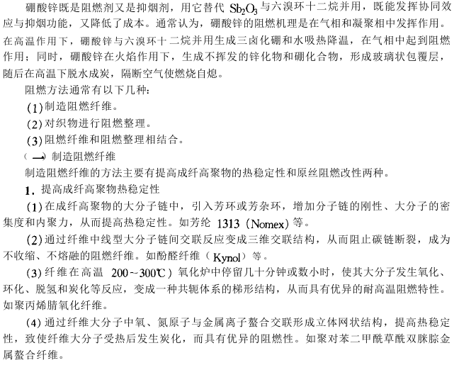 已经燃烧的纤维高聚物材料离开火源后,若要继续燃烧,必须具备下列条件。 (1)由燃烧产生的热能足以加热高聚物,使之延续不断地产生可燃性气体。 (2)所产生的可燃性气体和氧气混合,并扩散到已点燃部分,或燃烧部分蔓延到可燃气体和氧气的混合区域中。 这样,可燃物、热与氧气三个要素构成了燃烧循环。 除了上述可燃性气体和氧气的气相有焰燃烧外,还有裂解时形成的炭化残渣和氧气发生的固相无焰燃烧(又称阴燃)。无焰燃烧所需的温度比有焰燃烧要高得多,但阴燃也能烧毁材料,有时并蓦地爆发火焰成为有焰燃烧而引起火灾。 二、燃烧体系 燃烧过程在空间分布普通可分为5个区:凝结相加热区;凝结相反应区;气相加热反应区;火焰区;燃烧产物区。每一个区域都发生不同的物理化学变幻。 在凝结相加热区,聚合物在热源作用下,温度逐渐升高,发生物理吸热。 在凝结相反应区,由于高温的作用,随着聚合物结构与受热情况的不同,进一步发生热裂解、热氧化裂解、脱氢、缩合、环化与炭化等化学反应。这些反应有的是放热的,有的是吸热的。 在凝结相反应区生成的各种裂解产物与少量分散的微粒炭,在向气相加热反应区扩散过程中,它们被继续加热,而发生进一步裂解,并和空气中的氧气混合反应放出热量。这些热量除用于本区的裂解外,还向凝结相反应区反馈一部分,以维持凝结相反应区反应的进行,因气相加热反应区靠近材料的表面,温度不太高,裂解产物浓度较大,氧气浓度较小,因此,发生不尽全燃烧而形成一些和石墨结构相似的微粒炭,或在材料的表面形成炭化层。 由气相加热反应区逸出的深度裂解产物与氧化产物在向火焰区扩散的过程中,因火焰区氧气浓度高,而尽成所有的燃烧反应。反应放出的热量或传递给相邻的气相加热反应区,或以辐射的形式传递到其他各区。显然,反馈的能量和扩散到外部的能量的比率和燃烧物的形态、火焰的蔓延方式有关。 续的过程,各区域之间并无绝对的界限,它们相互结合而形成燃实际上,燃烧是一个连烧波。 由上述分析可知,在稳态燃烧时,每个区域所发生的物理与化学变幻都需要靠其本身反应放出的热量或高温区传入的热量来维持,各区的反应物则由其本身的反应产生,或从低温区进入。其中凝结相反应区发生的反应对气相燃烧的影响大。裂解反应生成的可燃气体是气相燃烧反应的原材料,可促使火焰蔓延,但脱氧炭化形成的焦化层,因其良好的绝热性,可抑制热量向凝结相加热区与凝结相反应区传递,而表现出肯定的防火作用。 三、防火机理和办法 从燃烧过程、燃烧条件及燃烧体系的分析可知,要达到防火目的,就必须切断由可燃物、热与氧气三要素构成的燃烧循环。防火剂的作用就是将纤维燃烧的三个要素,以某种方式抑制或终止该循环过程,以达到防火之目的。 通常认为,溴系防火剂的防火作用主要是在气相中进行,其主要缘故是溴系防火剂受热分解成HBR,而HBR能捕捉传递燃烧链式反应的活性自由基(HO·、O·、H·),生成活性较低的溴自由基,以降低气相燃烧速度,减缓或终止纤维的燃烧。
