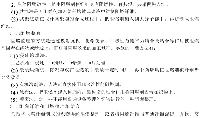 防火是指降低材料在火焰中的可燃性,减慢火焰蔓延速度,当火焰移去后能飞快自熄,不再阴燃。 一、燃烧的过程及条件 纤维材料的燃烧过程,即从着火燃烧直至成为终燃烧产物,需要经过一系列复杂的物理与化学变幻,这些变幻具有明显的阶段性,通常可分为: (1)材料的受热裂解,产生可燃性气体、不燃性气体与炭化残渣。 (2)可燃性裂解气和氧气混合,当温度达到着火点或遇到另外火源时,着火燃烧并释放出热、光与烟。 (3)放出的热量使纤维继续裂解燃烧,引起火焰蔓延。