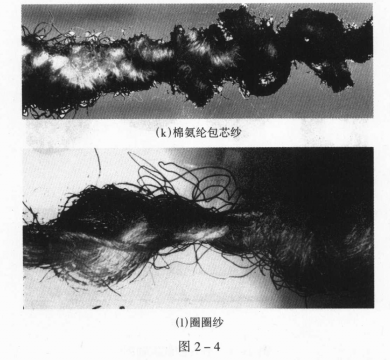 包芯纱:是以长丝或短纤维纱为纱芯,外包其他纤维或纺纱线而形成的纺纱线。