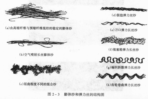 变形丝:化纤原丝经过变形加工使之具有卷曲、螺旋、环圈等外观特性。加工的目的是增添匠处的松散性伸缩性与弹性。根据夺形处的性能特点,通常有弹力丝、膨体纱与网络丝三种。