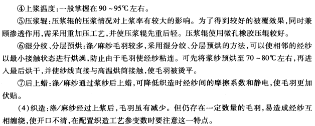 (3)纺纱线捻度:为了减少纱条毛羽,提高成纱光洁度,增添纤维间的抱合力,纱的捻度可适当提高,普通超过临界捻系数10%左右。同时也提高了布料的挺括度。