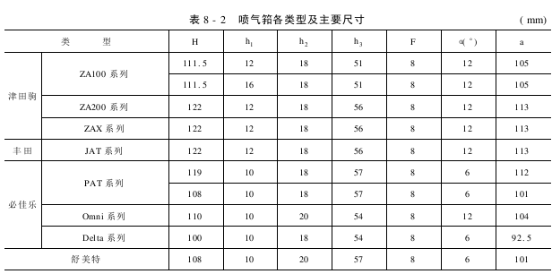按喷气织机的型号、类型与喷气筘主要尺寸的对应情况见表8-2。